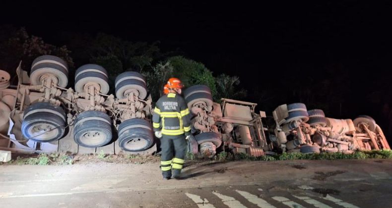 A equipe do 4º Núcleo Bombeiro Militar (4º NBM) foi acionada por volta das 18h45 para atender a uma ocorrência de tombamento de carreta, a aproximadamente 50 quilômetros do perímetro urbano do município.